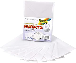 folia 195000 - Briefumschläge, 50 Kuverts aus Transparentpapier, weiß, ca. 11 x 15,5 cm, 115 g/m², passend für DIN A6 Karten, ideal als Briefumschlag bei Glückwünschen, Einladungen und Gutscheinen