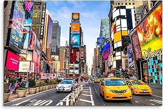 Paul Sinus Art 120x80cm Leinwandbild auf Keilrahmen New York Times Square Reklamen Straße Verkehr Wandbild auf Leinwand als Panorama