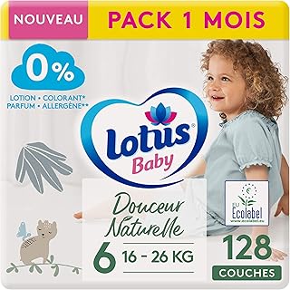 LOTUS BABY Douceur Naturelle Windeln, Größe 6 (16-26 kg), 1 Monat, 128 Stück