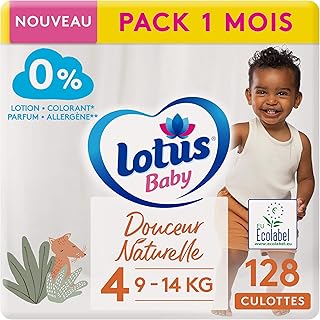 Lotus Baby Douceur Naturelle – Höschen Größe 4 (9 – 14 kg) Pack 1 Monat – 128 Slips