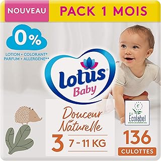 Lotus Baby Douceur Naturelle Höschen, Größe 3, 7, 11 kg, Packung 1 Monat