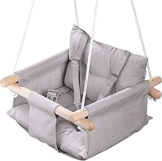 Cateam Leinwand Babyschaukel Taupe grau - Hängende Schaukel aus Holz für Baby mit Sicherheitsgurt und Montageteilen. Baby Hängemattenstuhl Geburtstagsgeschenk.