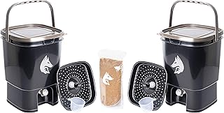 Bokashi Eimer Starterset -original Japanisches Design 2 Eimer inkl. EM aktiv + Bokashi Ferment - Komposteimer wandelt Küchenabfälle in Dünger um (Schwarz)