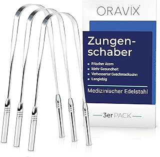 Zungenschaber Edelstahl | Dreier-Pack | Zungenreiniger | Für einen frischen Atem und eine bessere Mundgesundheit | Zungenreiniger Edelstahl | Zungenreiniger für Kinder und Erwachsene | ORAVIX