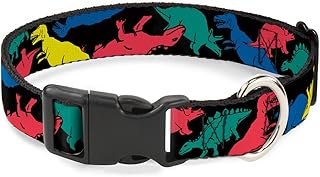 Buckle-Down Plastic Clip Collar - Dinosaurs Black/Multi Color - 1.5" Wide - Fits 18-32" Neck - Large
