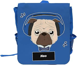 Kinder-Rucksack mit Namen Neo und schönem Motiv - Mops mit Kopfhörer - für Jungen | Rucksack | Backpack