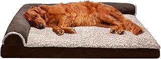 Furhaven Memory Foam Haustierbett für Hunde und Katzen - L Chaise Sofa Zweifarbig Plüsch Fell und Wildleder Couch Hundebett mit Abnehmbarem, Waschbarem Bezug, Espresso, Jumbo (X-Large)
