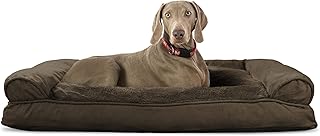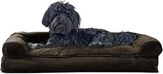 Furhaven Kissen Haustierbett für Hunde und Katzen - Sofa-Stil Plüsch Fell und Wildleder Couch Hundebett mit Abnehmbarem Waschbarem Bezug, Espresso, Groß