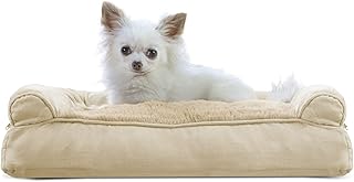 Furhaven Kissen Haustierbett für Hunde und Katzen - Sofa-Stil Plüsch Fell und Wildleder Couch Hundebett mit Abnehmbarem waschbarem Bezug, Ton klein