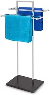 Relaxdays Handtuchständer HBT: ca. 87 x 37,5 x 24 cm freistehender Handtuchhalter in Edelstahl-Optik und Holz Bodenplatte mit 2 Handtuchstangen für Badetücher auch als Kleiderständer, schwarz / silber