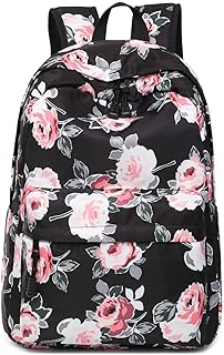 Damen Mädchen Schulrucksack mit Blumenmuster Wasserabweisend Rucksack Daypack Schultasche mit 14 Zoll Laptopfach (Schwarz)
