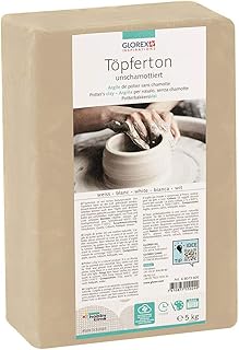 Glorex 6 8073 605 - Töpferton unschamottiert, 5 kg in weiß, geschmeidig und leicht zu verarbeiten, ohne Schamottanteil, lufthärtend und brennbar, für Töpferscheibe geeignet