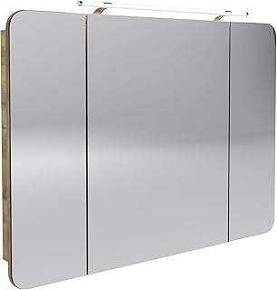 FACKELMANN LED Spiegelschrank Milano/Badschrank mit 3D Effekt/Soft-Close/Maße (B x H x T): ca. 110 x 78 x 15,5 cm/Schrank mit Spiegel & LED-Beleuchtung fürs Bad / 3 Türen/Korpus: Braun hell