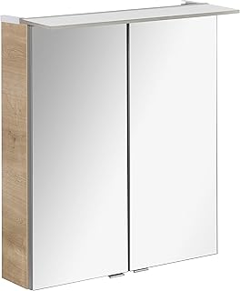 FACKELMANN Spiegelschrank A-VERO/Badschrank mit gedämpften Scharnieren/Maße (B x H x T): ca. 70 x 79,5 x 15,5 cm/hochwertiger Schrank fürs Badezimmer/Korpus: Braun hell/Front: Spiegel