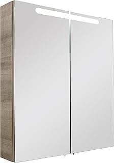 FACKELMANN LED Spiegelschrank B.PERFEKT/Badschrank mit Soft-Close-System/Maße (B x H x T): ca. 60 x 69 x 15 cm/hochwertiger Schrank mit Spiegel und Beleuchtung fürs Bad/Korpus: Braun