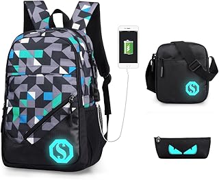 Schultasche,Rucksack Sports Schultasche Leisure Rucksack Luminous Rucksack mit USB Charger Port Student Backpack für Mädchen Jungen & Kinder Damen Herren Jugendliche (Kinder Schulrucksack Schwarz 1)