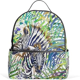 Leichter Schulrucksack, lässiger Rucksack für Jugendliche, Mädchen und Jungen, Zebramuster, afrikanisches Tier mit tropischem Palmblatt