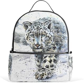 Leichter Schulrucksack, lässiger Rucksack für Jugendliche, Teenager Mädchen und Jungen, Aquarellfarben, niedlicher Schneeleopard, Wildtiere, Reise, Schultasche