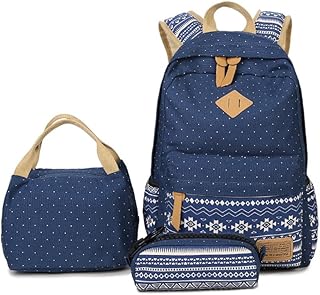 Casual Canvas Schulrucksack Set+Lunch-Tasche +Mäppchen Rucksack Freizeitrucksack Daypacks Backpack für Mädchen Jungen & Kinder Jugendliche Damen Herren (Blau)