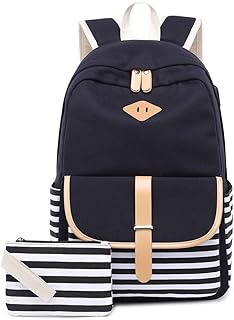 Casual Canvas Schulrucksack Set+Schultertasche +Geldbeutel/Mäppchen Causal Rucksack Freizeitrucksack Daypacks Backpack für Mädchen Jungen & Kinder Jugendliche Damen Herren (Set+Beutel+A)