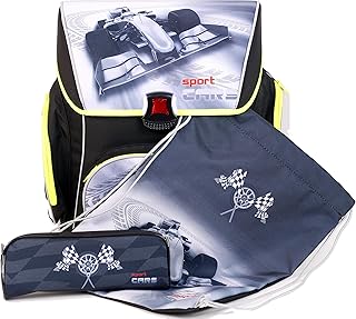 Schulranzen Set Schulrucksack Set+Schultertasche +Geldbeutel/Mäppchen Rucksack Freizeitrucksack Daypacks Backpack Sportbeutel für Mädchen Jungen & Kinder Jugendliche Damen Herren (Rennauto)