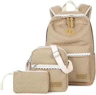 3 Teile Set Schulrucksack Canvas Rucksack Mädchen/Damen, Rucksack Schule/Schulranzen + Schultertasche/Messenger Bag + Mäppchen/Purse-Typ A-Khaki