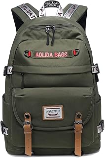 P.KU.VDSL Canvas Rucksack, Vintage Rucksack Schulrucksack Retro Rucksack Daypack Backpack Lederrucksack Wanderrucksack Reisetasche Laptoprucksack für Herren Damen Jungen Mädchen (A - Armygreen)