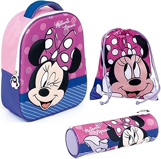 Minnie Mouse 3D-Kinderrucksack für Mädchen (32 cm) + Federmäppchen Minnie Maus + Minnie Mouse Tasche