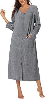 Damen Hausmantel Hauskleid mit Reißverschluss Bademantel Drucken Morgenmantel Kurzarm Nachthemd mit Taschen Nachtwäsche