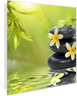 banjado® Großer Schlüsselkasten aus Glas - Schlüsselbox 30x30cm mit 50 Haken - Motiv Steine & Relax 4 - Schlüsselschrank für Schlüsselaufbewahrung mit beschreibbarer Glastür als Magnettafel nutzbar