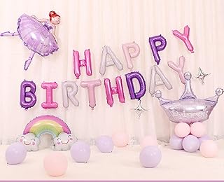 Geburtstagsfeier Luftballons, Alles Gute zum Geburtstag Luftballons Cartoon Schwein Huhn Regenbogen Krone Bunte Luftballons Party liefert Dekorationen für Jungen Mädchen (E)
