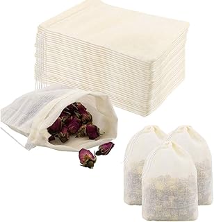 Jouseer 100 Stück Baumwollbeutel Klein mit Kordelzug, Wiederverwendbare Baumwoll Musselin Beutel, Teefilterbeutel für Losen Tee, Kräuter, Gewürze und Kaffee