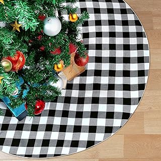 B-COOL Baumrock Weihnachten Schwarz und Weiß Baumrock Baumwolle Baumrock Kleiner Weihnachtsbaum Rock Büffel Plaid Baumrock Doppellagig 61 Zoll Urlaub Dekor