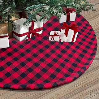 Yistao Weihnachtsbaumrock rot und schwarz Büffel Karo Plaid Baumrock 89,9 cm Doppellagig Weihnachtsbaum Rock für Weihnachtsdekorationen Winter Neujahr Bauernhaus Ornamente
