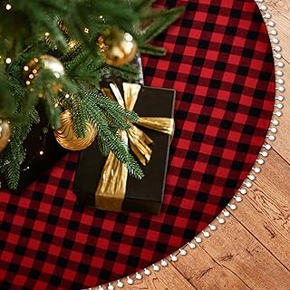 Weihnachtsbaumrock 91,4 cm Buffalo Plaid Weihnachtsbaum Rock Weihnachten Basis Abdeckung Plaid Weihnachtsbaum Matte Rot Kariert Baum Rock mit Pom Trim für Weihnachten Neujahr Urlaub Home Party