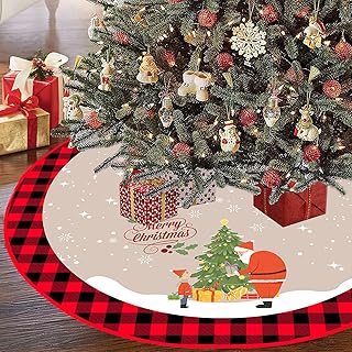 Weihnachtsbaumrock 121,9 cm Büffel Plaid Baumrock Elch Weihnachtsbaum Rock mit Schneeflocken Große Weihnachtsdekoration Matten für Weihnachtsbaum Urlaub Party Dekorationen