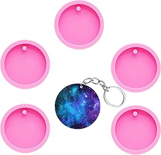 ibvenit 5 Stück Runder Schlüsselbund Silikonform Schlüsselbundform Dekorationen Formen Mit Löchern Anhänger für Gießformen Dekoration Harzformen DIY Basteln Handwerk