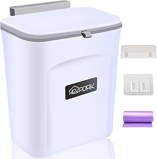 HEYPORK Komposteimer für die Küche, 2,4 Liter, für die Arbeitsplatte oder unter der Spüle, zum Aufhängen, kleiner Mülleimer für Badezimmer, Wandmontage, Kunststoff, Weiß