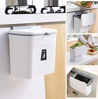 Hemoton Abfalleimer für Küche, Kunststoff, Deckel, kleiner Kompostbehälter unter der Theke, Küche, innen, zum Aufhängen, Behälter für Abfälle, für Lebensmittel, Komposteimer